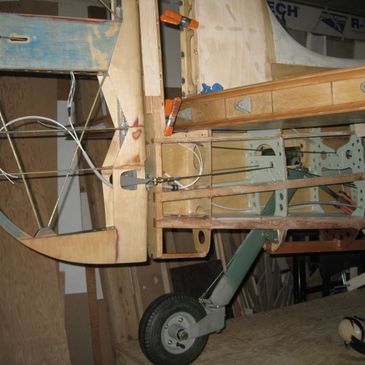 Finished skin the horiz stab. Lots of work on getting the elevator to fit and work right, and ready to cover. Made the rudder - twice. Mounted horiz stab permanently onto fuselage. Started on fin.
