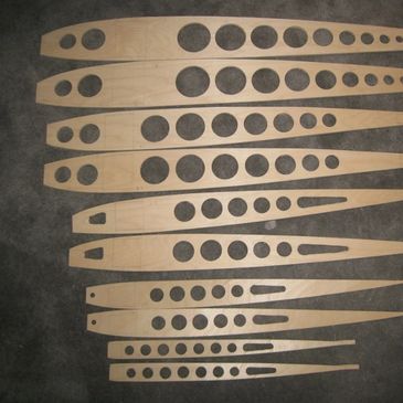 Glued up the insides of the horizontal stabilizer and elevator. Built the workbench and started cutting out the fuselage bulkheads.