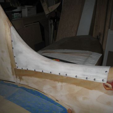 Finished rudder and hinges, skinned fin, added some more fuselage skin. Made up first fiberglass fairing at front of fin to fuselage join. Storage area cover and fin side panel covers.