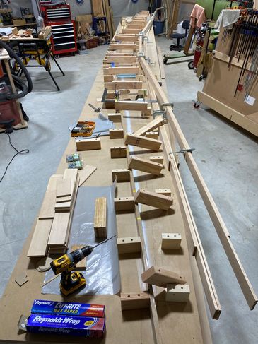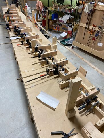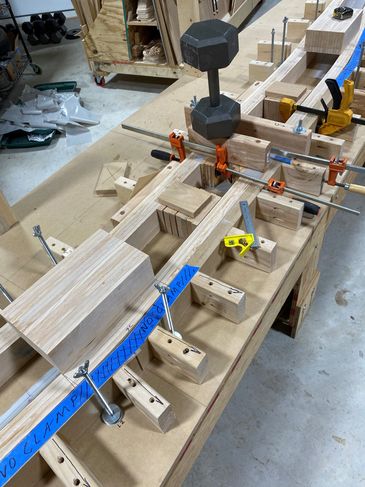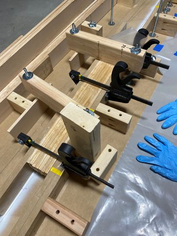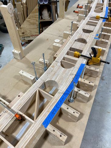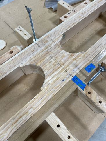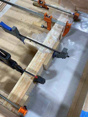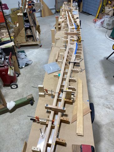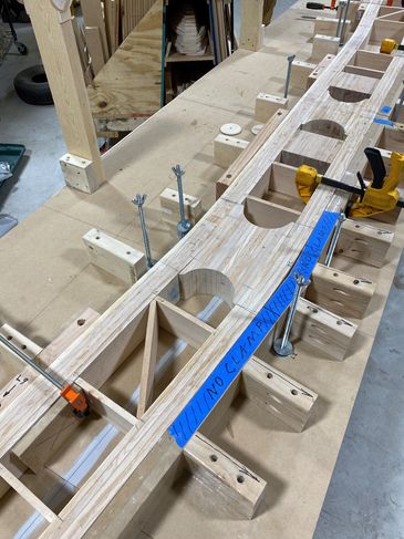 My friend has returned home and I'll have to go back to work on Monday. We got a lot done while he was here, though far less than I had hoped, due to the cracked laminates and having to make and glue scarfs into all four of the lower ones. Still, everything that really needed two people has been done. Thanks Arild!